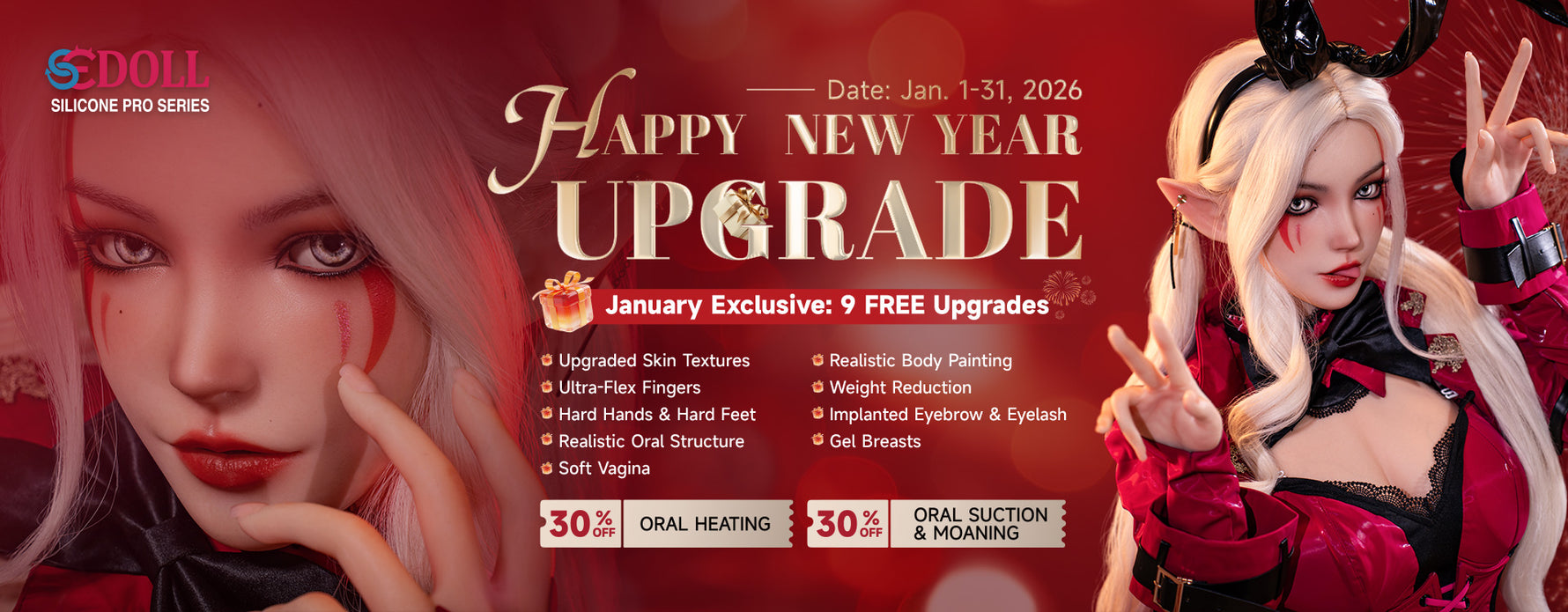 + FREE 2ND Head + FREE Real Skin Texture + FREE Implanted Eyebrow & Eyelash + FREE Gel Breasts + FREE Hyper-realism Body Painting & Freckles + FREE Articulated Fingers + FREE Hard Hand + FREE Soft Silicone Head + FREE ROS + FREE Gel Butt + FREE Ultra Soft Vagina + FREE Reduce Weight + FREE Standing Feet/Standing No Bolts/Hard Feet + FREE EVO Skeleton Upgrade